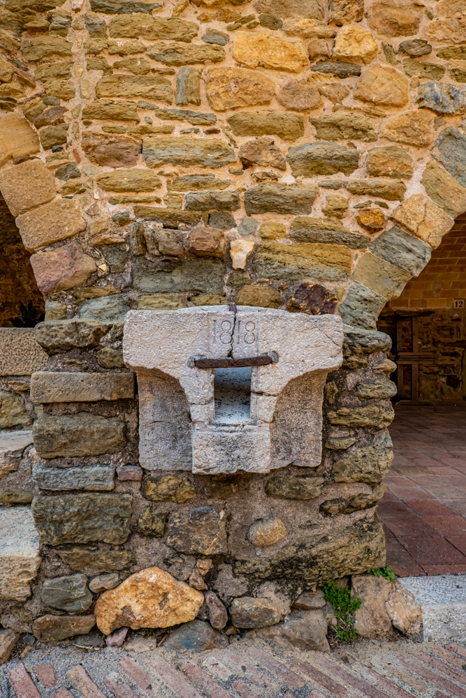 Justo en la Plaza Mayor o de Jaime I, encontraremos esta piedra medianera, reproducción de 1818, patrón de medida de los cereales en todo el obispado de Girona, en pleno siglo XIII