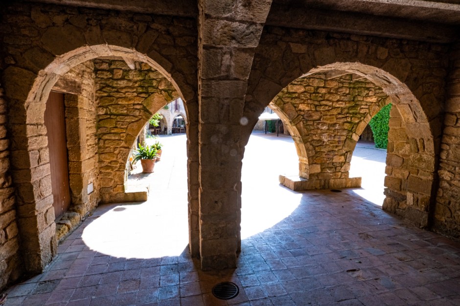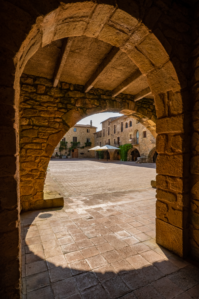 La mayoría de calles empedradas de Monells, nos conducen a su Plaza mayor, centro neurálgico y sin duda la zona más bonita.