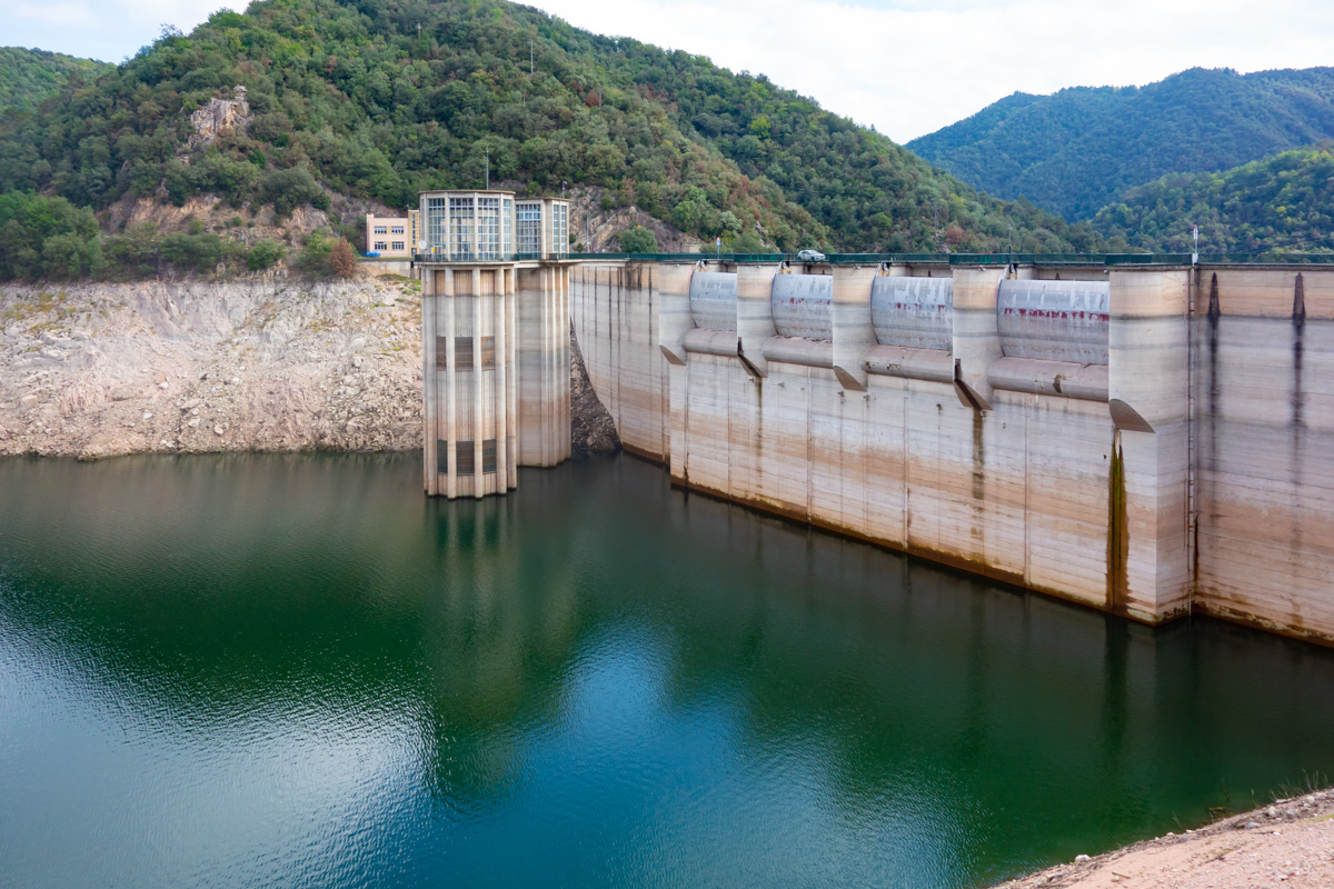 Uno de los pocos puntos de vista para contemplar en su totalidad la presa del embalse con este aspecto. A fecha de hoy, el embalse tan solo acumula el 25 % de su capacidad.