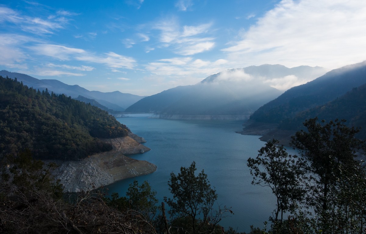 Proseguimos bordeando el embalse de Susqueda a medida que el día despejaba y nos daba esta imagen, con la presa visible al fondo.