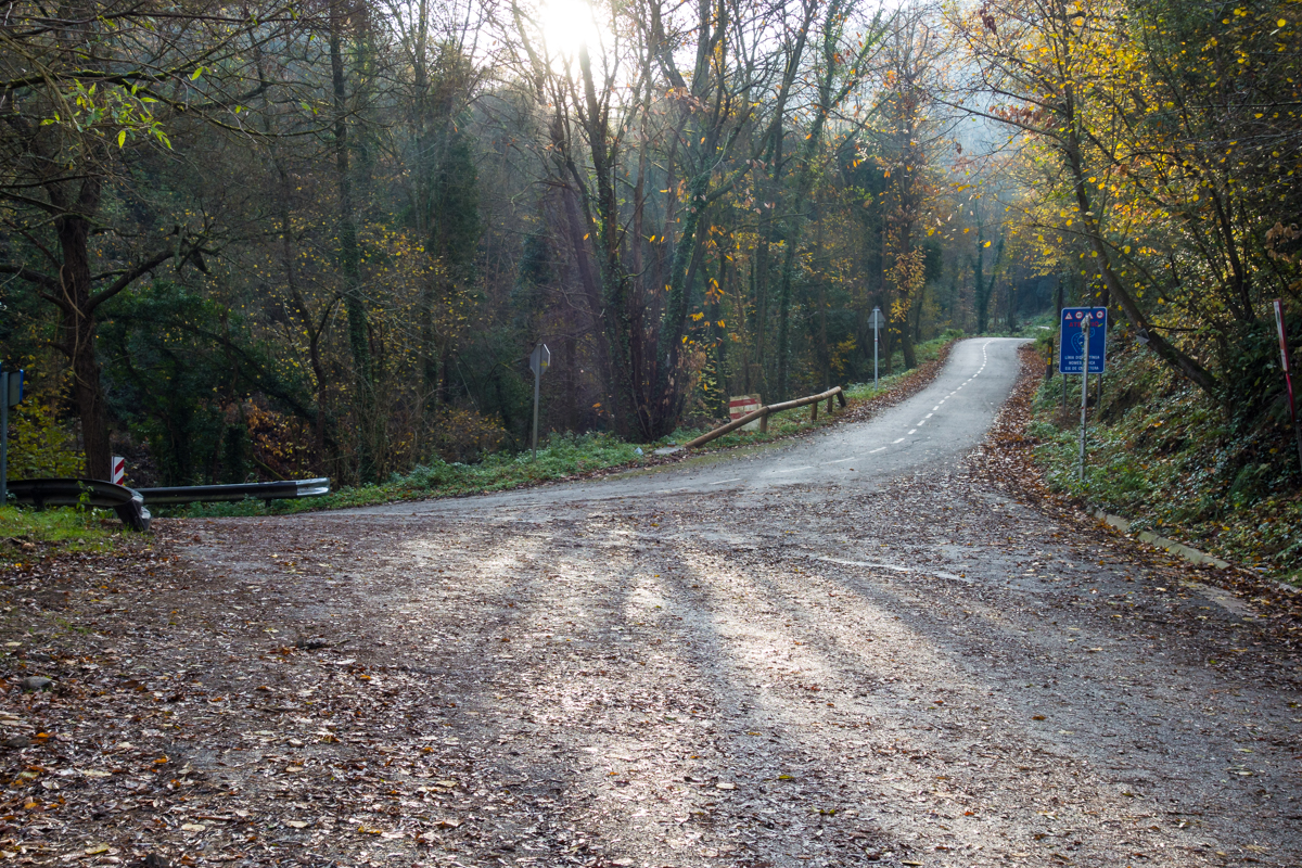 Acto seguido, todo es un recorrido recóndito y solitario que transcurre por caminos y pistas forestales con fuertes subidas y bajadas, donde lo único que te acompaña son bosques de abetos, pinos, encinas, castaños y alcornoques y los tímidos sonidos de las abundantes aves que anidan por estos contornos.