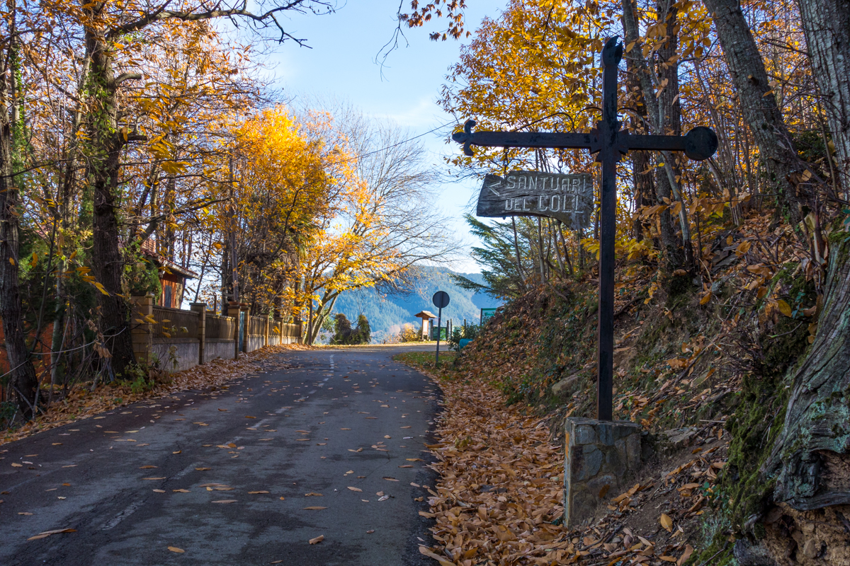 Antes de llegar a la presa, abandonamos la pista que rodea el embalse. Aquí a nuestra derecha, nos encontramos de lleno con la pista asfaltada que, con una fuerte subida de más de 5 km. y rampas de casi el 20%, nos llevará hasta el Santuario de la Mare de Deu del Coll.