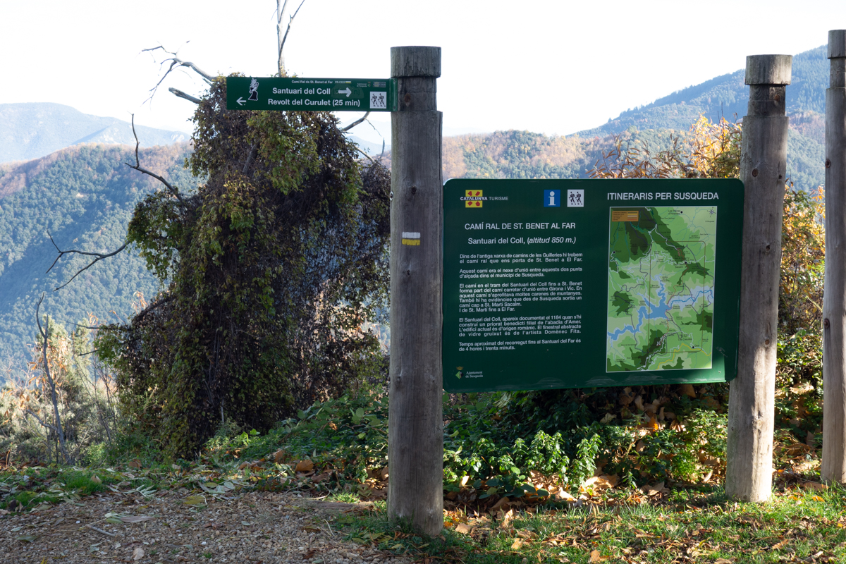 El Santuari de la Mare de Deu del Coll está situado en el lado norte de las Guilleries, a 823 metros de altura, en la collada que une los macizos de San Benedicto y Sant Gregori, cerca del Coll de Nafrè, paso tradicional entre los valles de Osor y Susqueda.