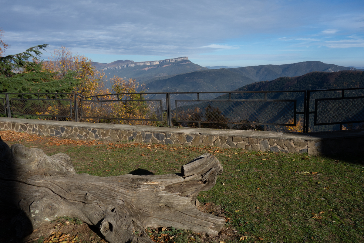 Esto lo convierte en un mirador excelente, desde donde podemos divisar el embalse de Susqueda, los riscos del Far, el valle de Osor, el macizo de Solterra y la sierra de Santa Cruz.