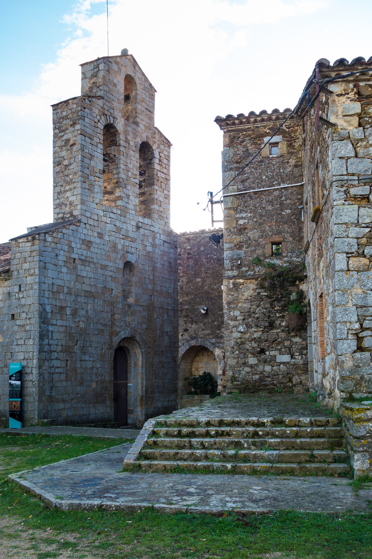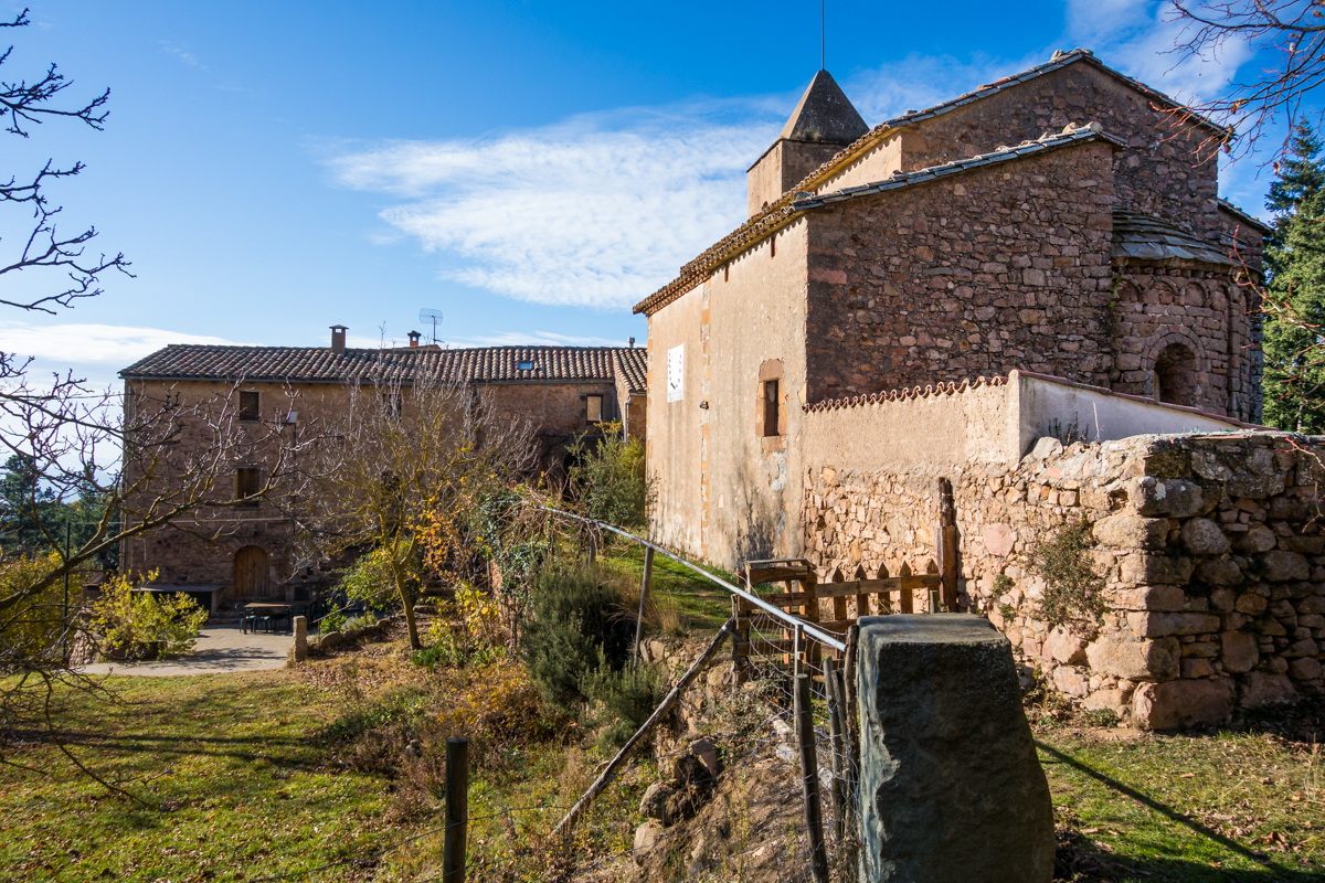 Posteriormente y siguiendo la pista que nos llevará más tarde al Pont de Malafogasa, nos desviamos un momento para visitar Sant Andreu de Bancells, se trata de una iglesia de origen románico situada a 927 metros de altitud, del siglo XI y modificada y ampliada, sobre todo en altura, entre los siglos XVII y XVIII, cuando se construyó un nuevo portal y se edificó un pequeño campanario de torre. Actualmente, la vicaría, de grandes dimensiones, está alquilada por un uso particular y es un alojamiento rural.