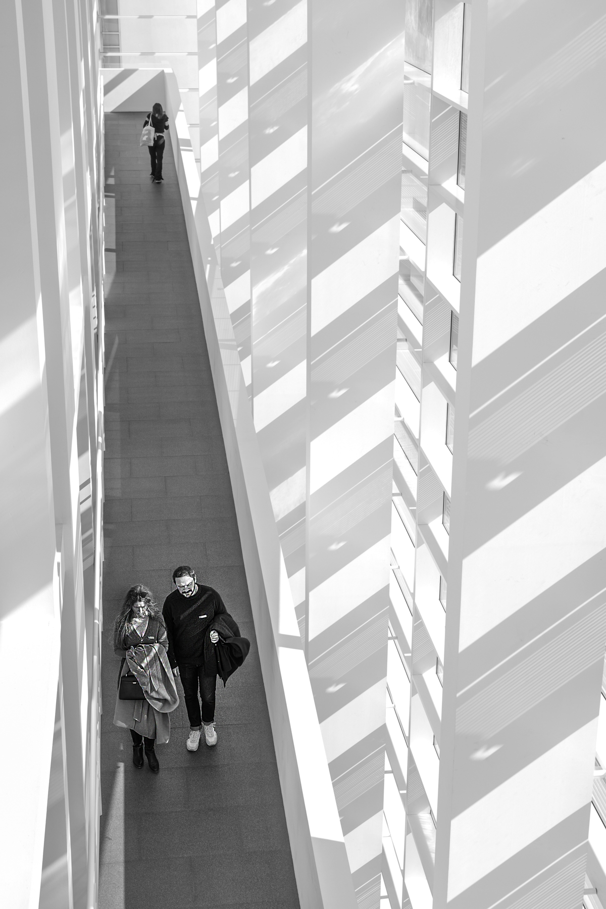 El museo MACBA de Barcelona es un espacio único para captar imágenes sorprendentes en su interior totalmente blanco, máxime cuando la luz del sol de la mañana atraviesa su estructura exterior, proyectando formas lineales de alto contraste.