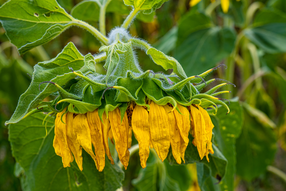 Este es uno de los pocos campos de girasoles que ha podido resistir a la sequía de este año en la Plana de Vic, Cataluña.