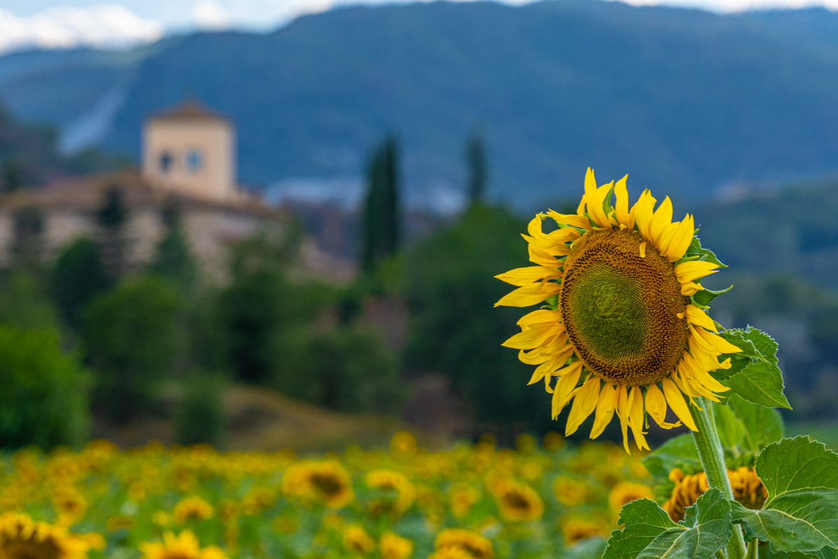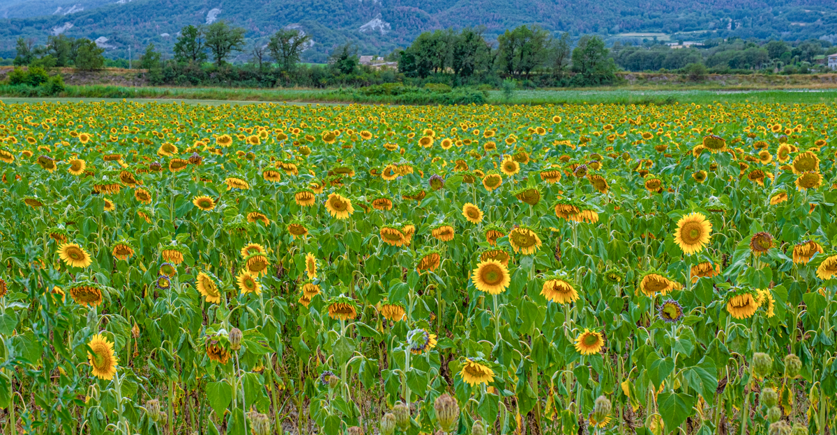 Que c’est magnifique ces champs de tournesols dans ce beau paysage: Bonne journée