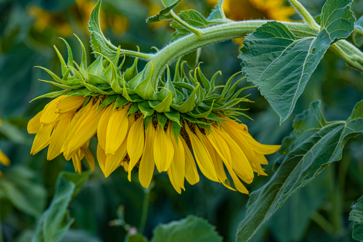 A pesar de ello he podido recopilar estas imágenes detalladas, desde todos los ángulos de esta planta herbácea compuesta de tallo largo, hojas alternas acorazonadas, flores terminales amarillas que se doblan en la madurez y dan un fruto con muchas semillas negruzcas comestibles, de las que se extrae aceite.