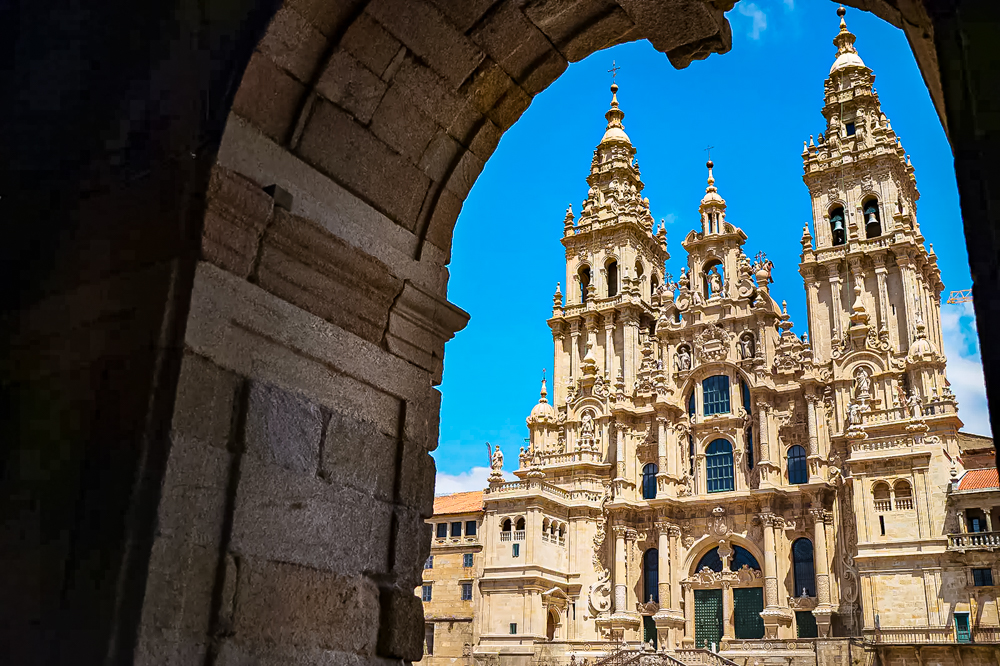 El centro neurálgico de esta maravilla está en la Plaza del Obradoiro y la Catedral, y junto a ella el Hostal de los Reyes Católicos, la Plaza de la Inmaculada y el cercano Monasterio de San Martiño Pinario. Este imponente templo catedralicio que combina tanto románico, como gótico, barroco y líneas neoclásicas tiene una larga historia, y es que ya en el siglo IX el obispo Teodomiro de Iria Flavia identifica aquí un templete romano como la tumba del Apóstol Santiago.