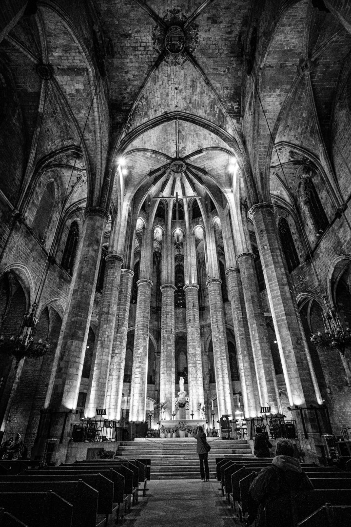 A diferencia de otros templos que se construían en más de un siglo, Santa María del Mar fue edificada en poco más de medio siglo, lo que le dió una de sus características que más me cautivan: la unidad de estilo. Gótico catalán. Eso significa una arquitectura que dilata el espacio en lugar de compartimentarlo. «Una arquitectura racional y limpia que da una gran sensación de amplitud»