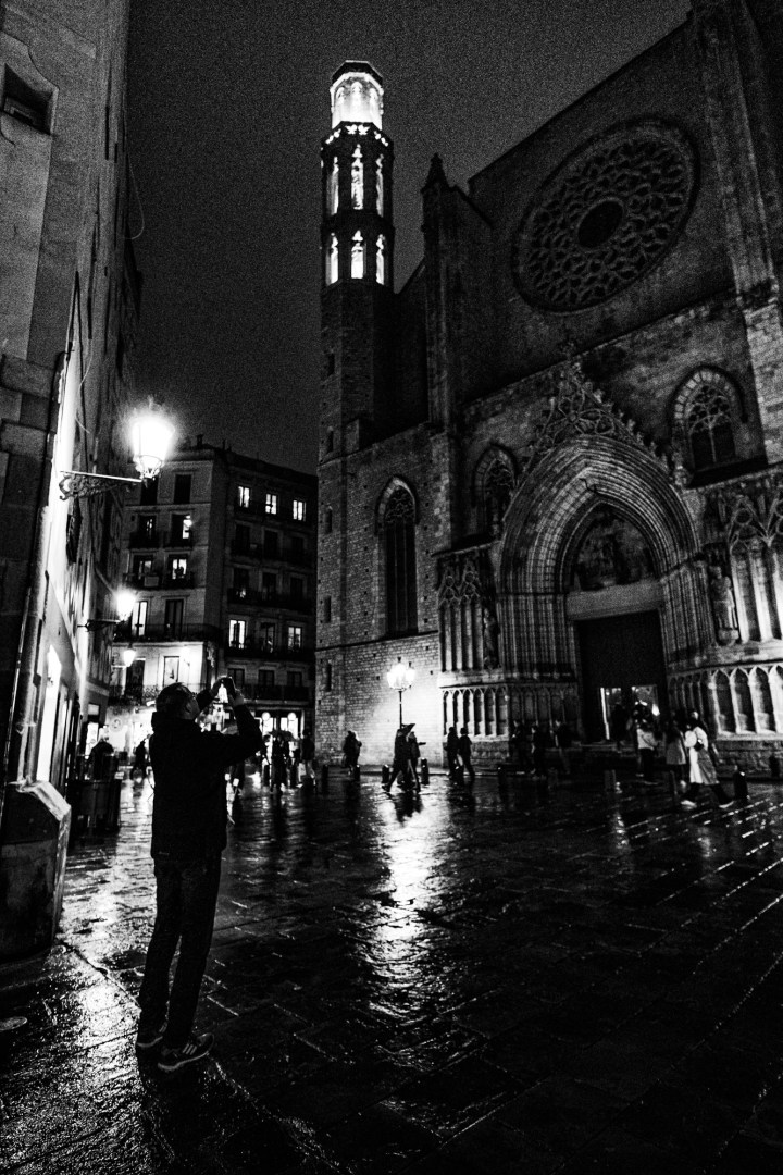 La noche y la lluvia me motivaron a visitar de nuevo esta joya del gótico. Santa María del Mar es una basílica menor, la tercera de la ciudad de Barcelona, precedida por la Catedral de Barcelona y la Basílica de la Mercè. En la actualidad, en Barcelona existen nueve basílicas menores que, a diferencia de las catedrales, las basílicas no son la sede del obispo.