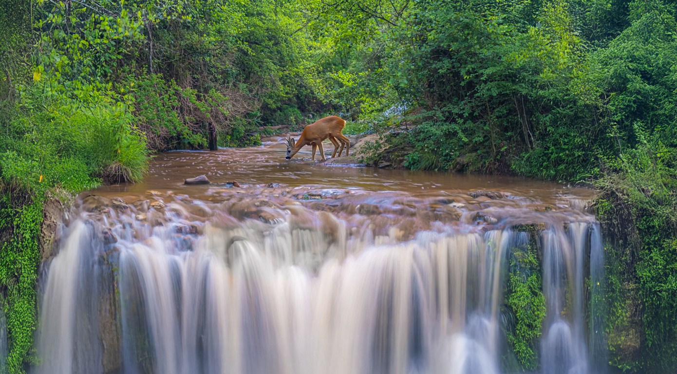Qué belleza de foto, exactamente captada en el instante apropiado el venado bebiendo y esa luz que refleja ese encuentro. Saludos