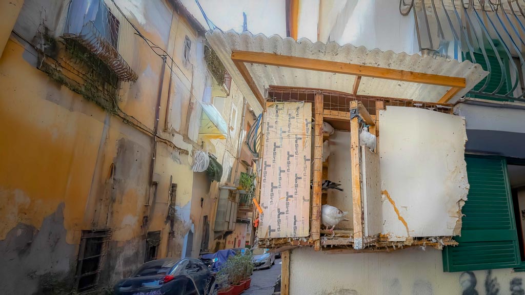 Es una de las zonas de Nápoles que más despertó nuestro interés y asombro, como este detalle de colgar un auténtico palomar en la esquina de una de sus calles, donde las palomas conviven plenamente con sus vecinos.