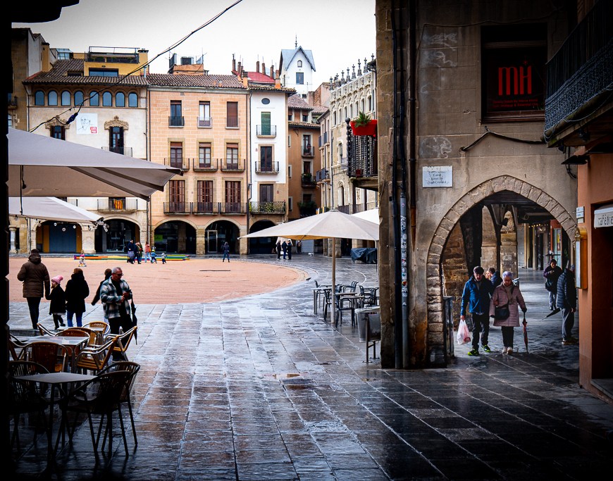 Vic, reflejos y sombras empapados de fina lluvia