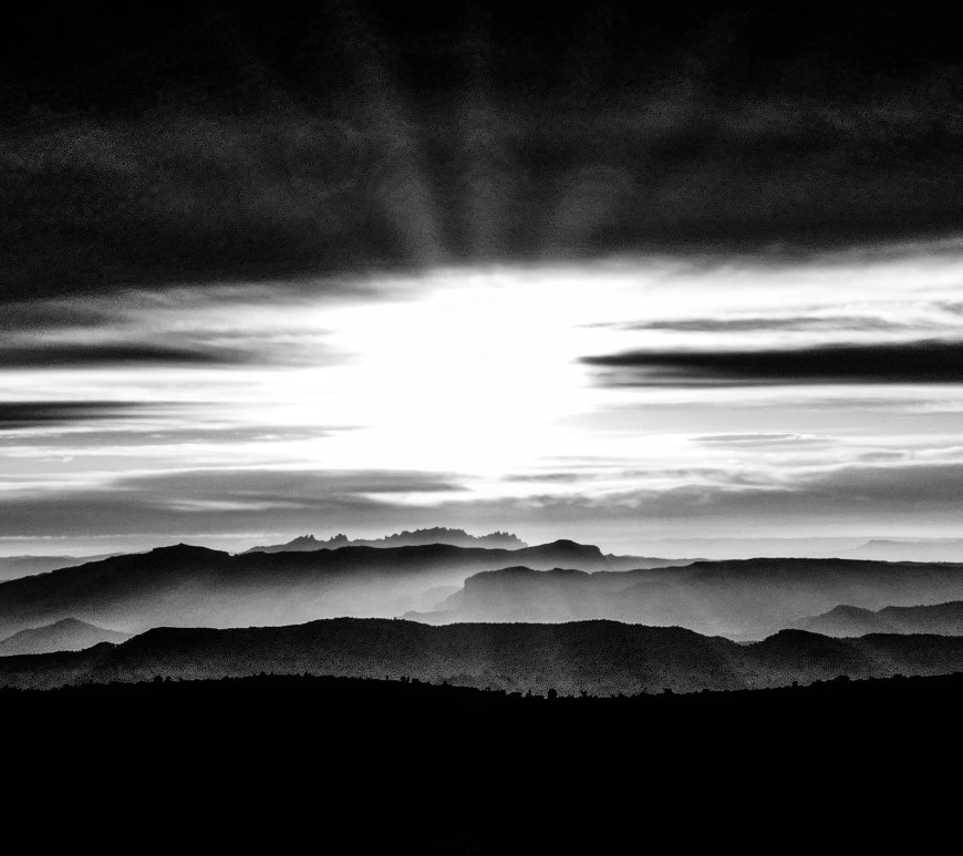 Puesta de sol sobre las Montañas de Montserrat