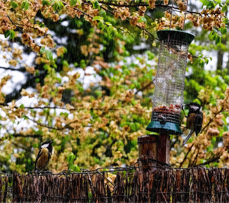 Los veo comer desde mi ventana, son voraces tragones. La lluvia, la nieve o el frío, no son un obstáculo para saciar su apetito. Buen provecho amigos!